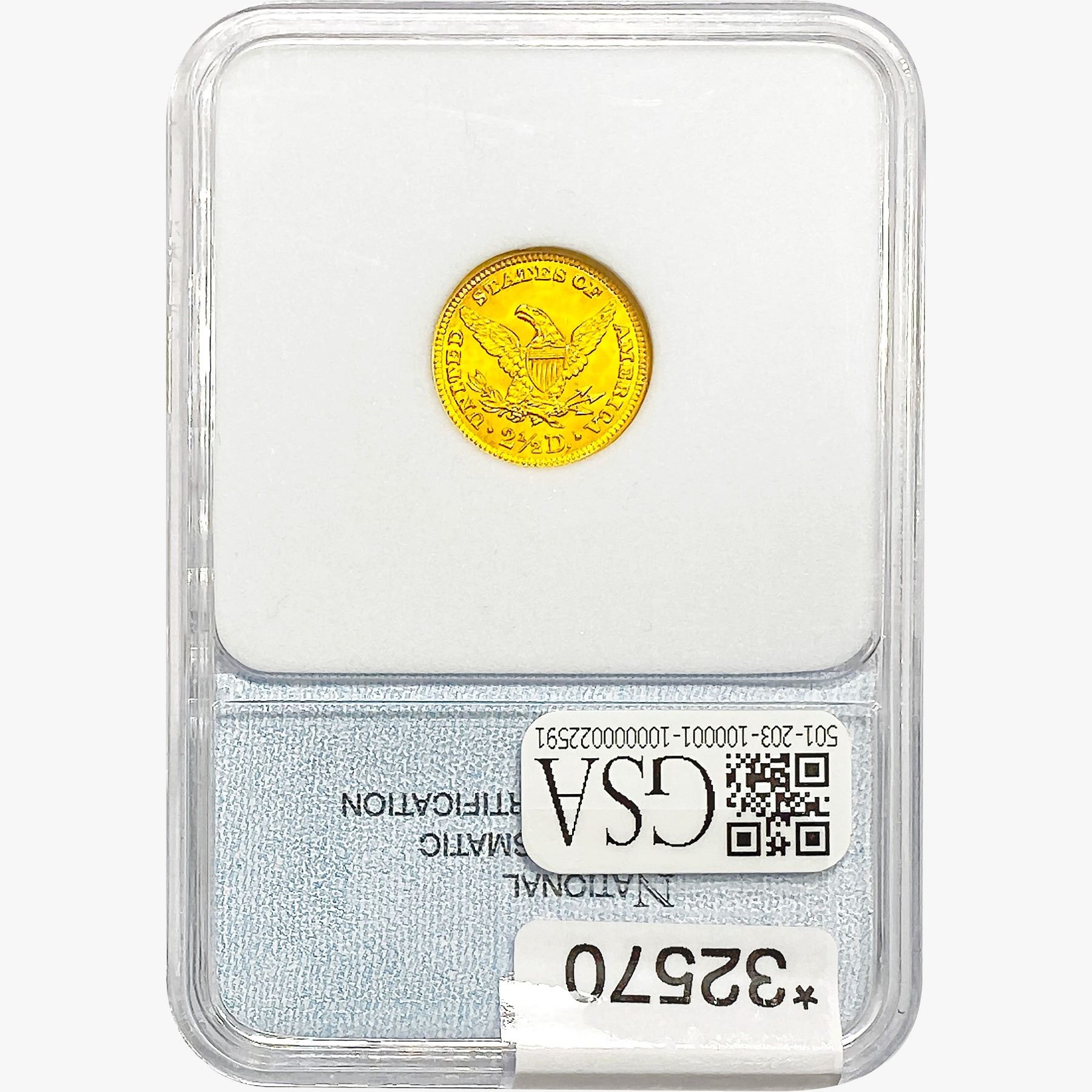 l. All non-certified coins and currency are guaranteed genuine, but are not guaranteed as to grade, since grading is a matter of opinion, an art and not a science, and therefore the description rendered by GSA or any third-party grading service may not agree with the opinion of others (including trained experts), and the same expert may not grade the same item with the same grade at two different times. GSA may, but is not obligated to, express an opinion as to non-certified numismatic items, in GSA’s opinion, or by its employees’ experience and the current interpretation of the American Numismatic Association’s standards as of the date the catalog was prepared. There is no guarantee or warranty expressed or implied that the grading opinions utilized by GSA, if any, will meet the standards of any grading service at any time in the future.