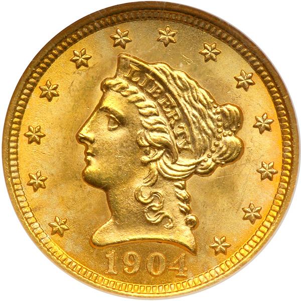 1904 $2.50 Liberty. NGC graded both MS-66. Rich golden toning. Shimmering mint brilliance is seen over each side of these fully struck Gems. Simply ideal quality for the collector and not seen all that often in this superior state of preservation. Lot of 2 coins (PCGS # 7856) .