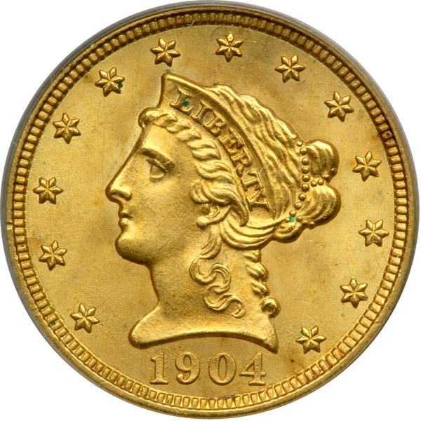 1904. PCGS graded MS-65. Lovely natural greenish-golden mint bloom color, sparkling Gem (PCGS # 7856) .