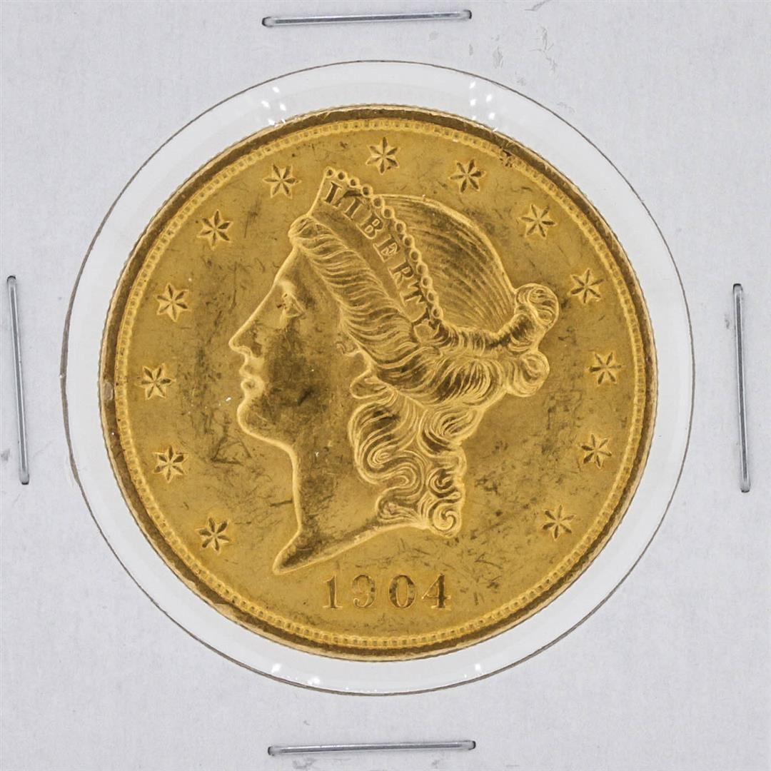One 1904 $20 CU Liberty Head Double Eagle Gold Coin.