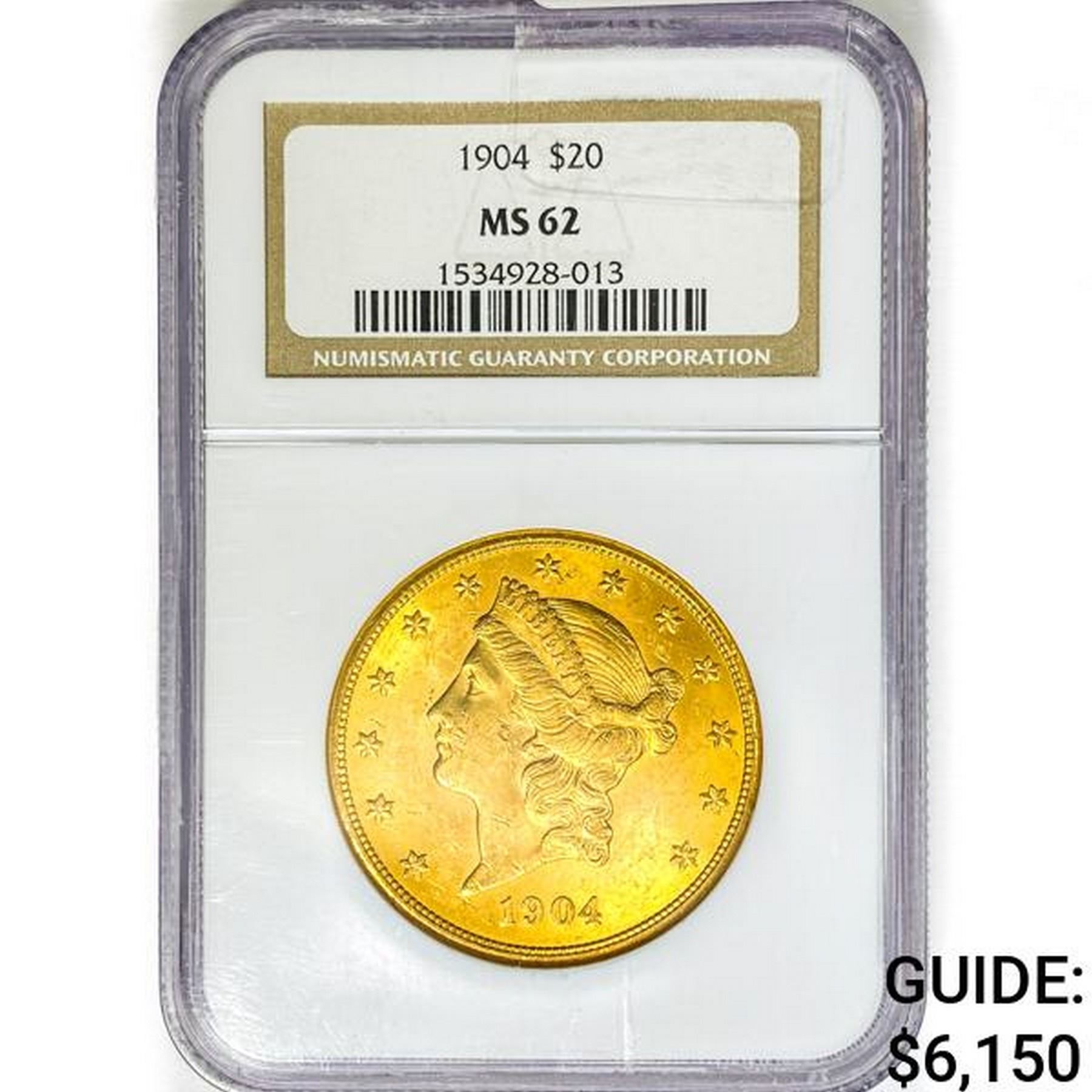 1904 $20 Gold Double Eagle NGC MS62