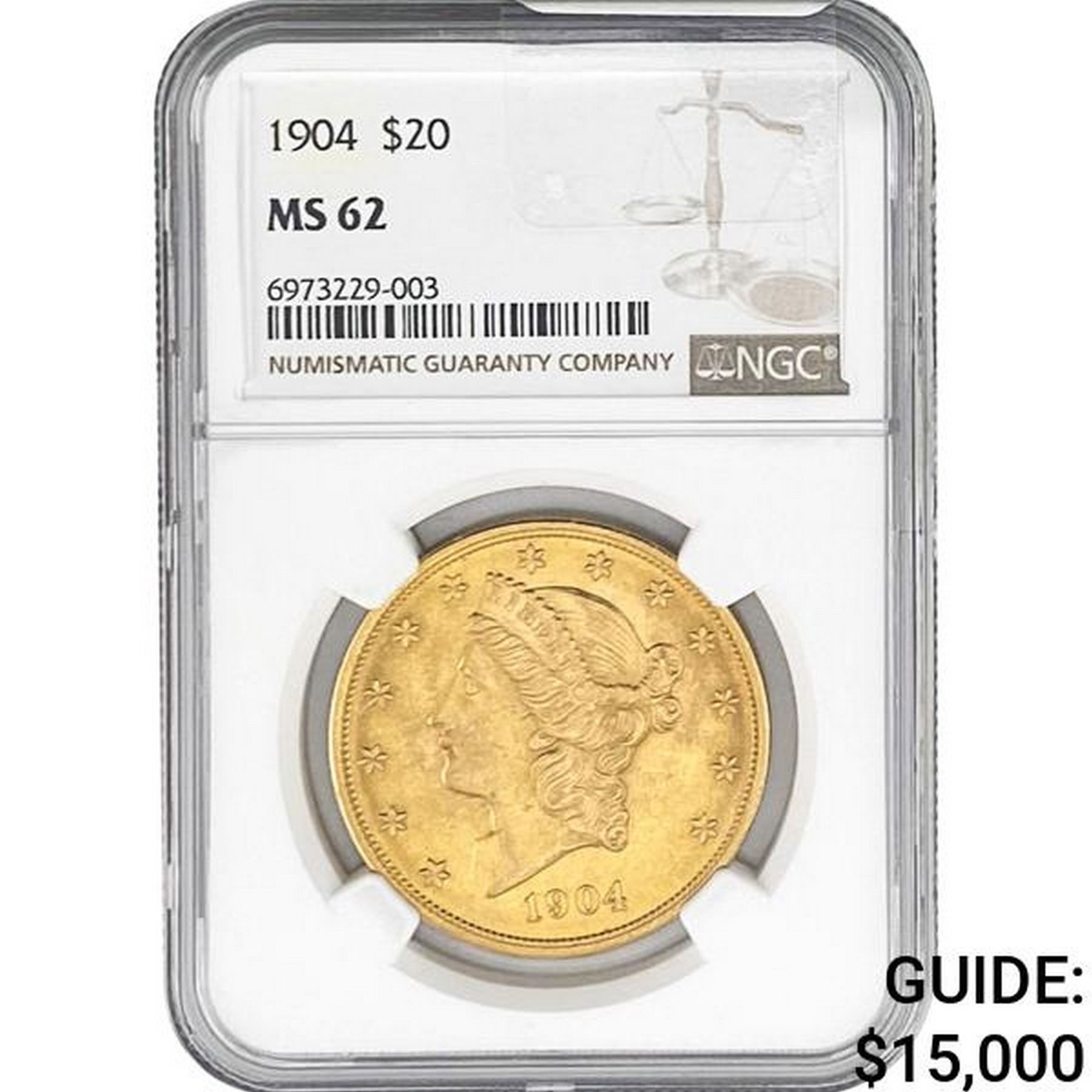 1904 $20 Gold Double Eagle NGC MS62
