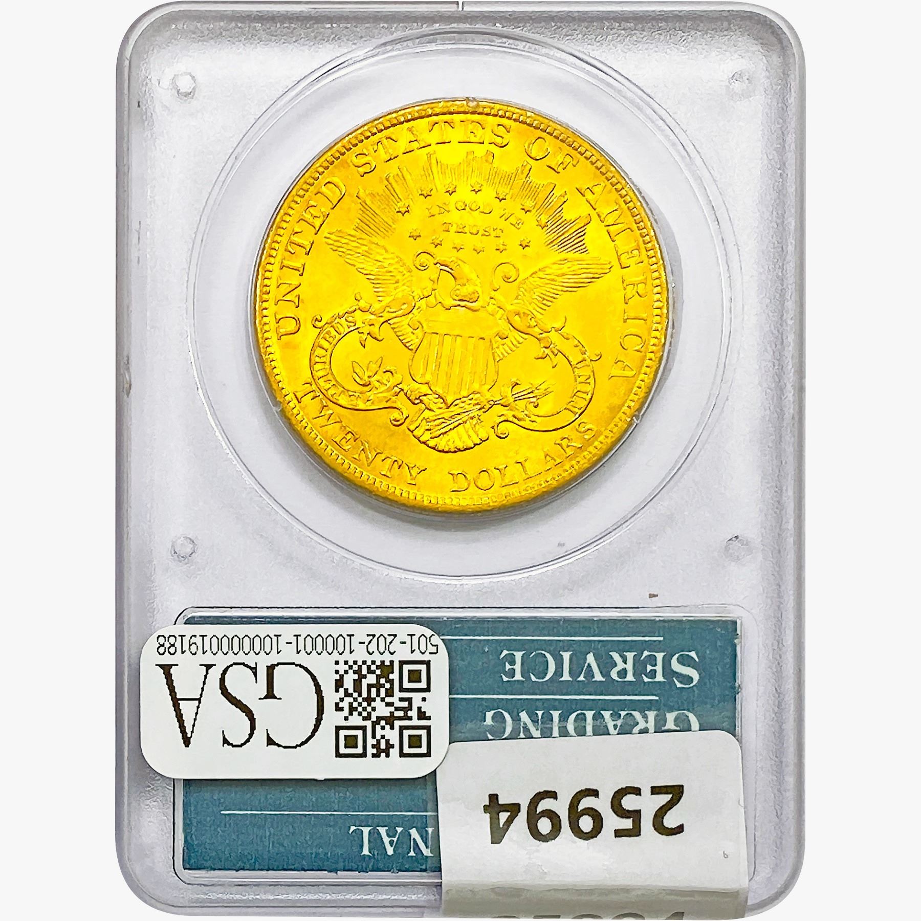 COINS AND CURRENCY LISTED IN GSA'S CATALOG AS GRADED AND ENCAPSULATED BY PCGS, NGC, ANACS, ICG, PCGS CURRENCY, PMG, PCGS BANKNOTE GRADING, CMC OR ANY OTHER THIRD-PARTY GRADING SERVICE ARE LIKEWISE SOLD "AS-IS" EXCEPT AS EXPRESSLY SET FORTH HEREIN. ALL THIRD-PARTY GRADING SERVICE GUARANTEES, INCLUDING AUTHENTICITY, ARE THE SOLE RESPONSIBILITY OF THE THIRD-PARTY GRADING SERVICE AND NOT WARRANTIES OR GUARANTEES OF GSA. BIDDERS SHOULD CONTACT THESE THIRD-PARTY GRADING SERVICES DIRECTLY WITH RESPECT TO ANY CLAIMS OR QUESTIONS THEY MAY HAVE CONCERNING THEIR GUARANTEES AND WARRANTIES. BIDDERS ACKNOWLEDGE AND AGREE THAT AUCTIONEER IS NOT BOUND BY OR LIABLE FOR ANY OPINION OR CERTIFICATION BY ANY THIRD-PARTY GRADING SERVICE. REMOVAL OF A PRODUCT FROM ITS PROTECTIVE CASING OR HOLDER OR ALTERATION OF ANY COIN HOLDER WAIVES ALL RIGHTS CONCERNING THE PRODUCT CONTAINED THEREIN.