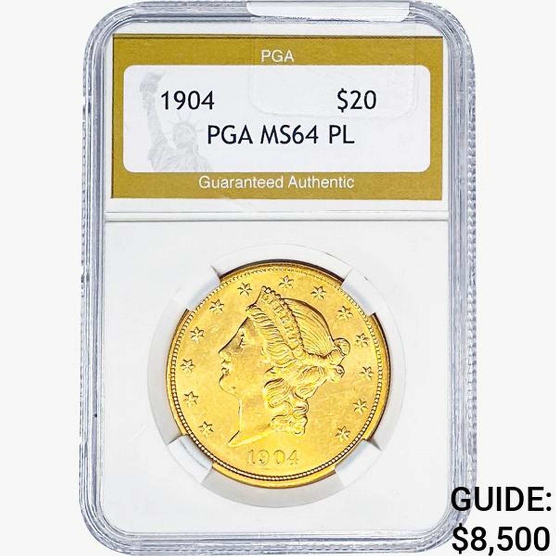 1904 $20 Gold Double Eagle PGA MS64 PL