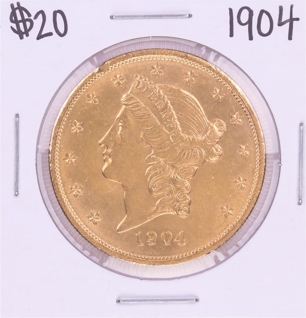 One 1904 $20 Liberty Head Double Eagle Coin.