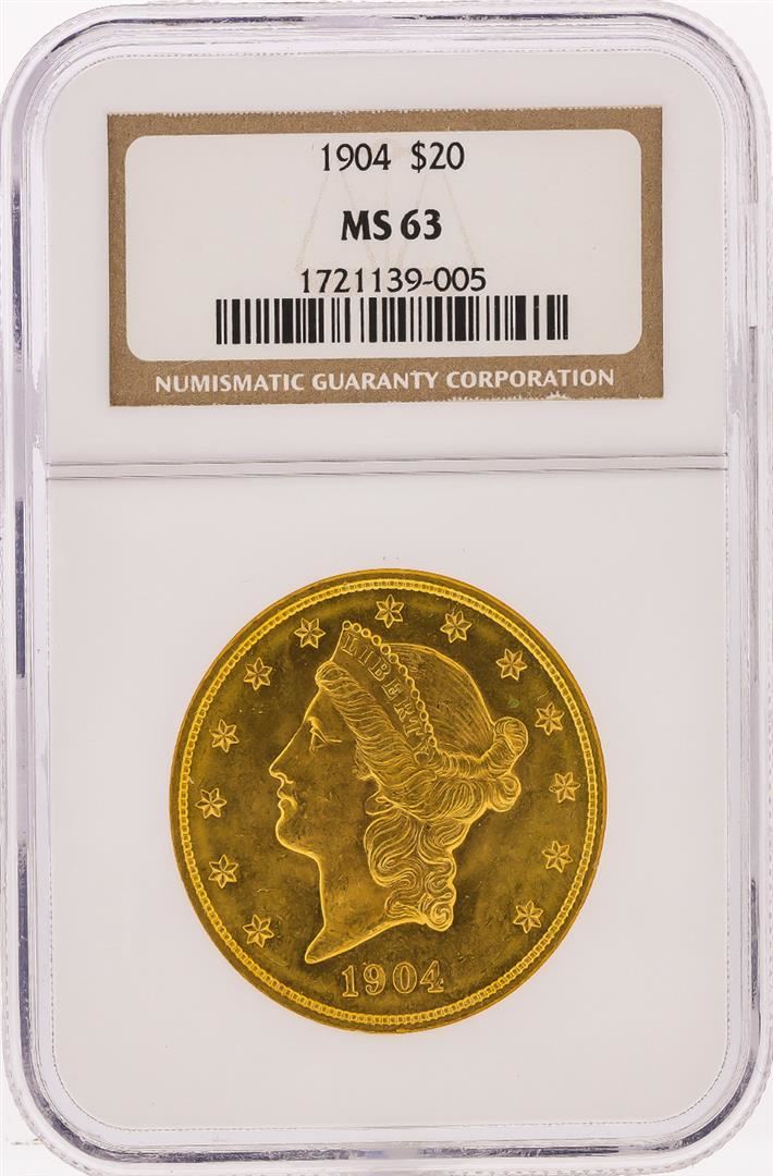 One 1904 $20 Liberty Head Double Eagle Gold Coin NGC Graded MS63. NGC Certified.