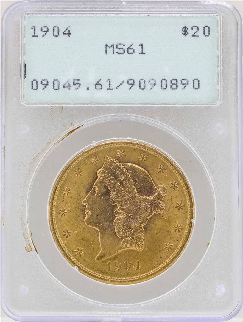 One 1904 $20 Liberty Head Double Eagle Gold Coin NGC MS61 Old Green Rattler. NGC Certified.