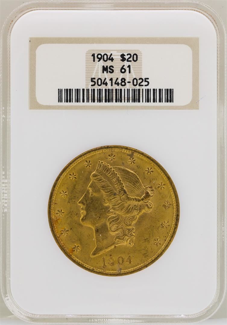 One 1904 $20 Liberty Head Double Eagle Gold Coin NGC MS61. NGC Certified.