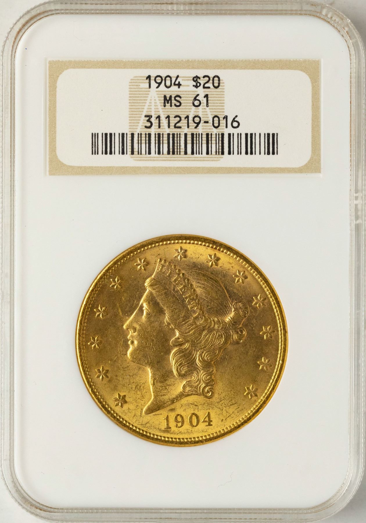 One 1904 $20 Liberty Head Double Eagle Gold Coin NGC MS61.
