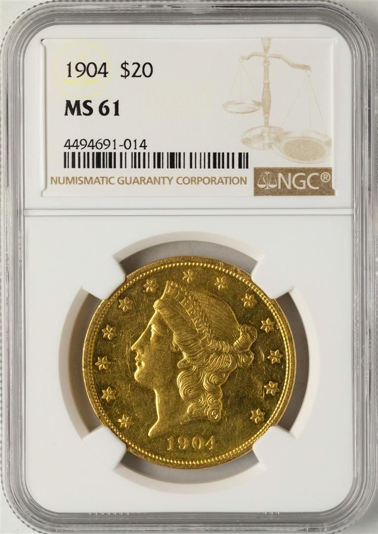 One 1904 $20 Liberty Head Double Eagle Gold Coin NGC MS61. NGC Certified.