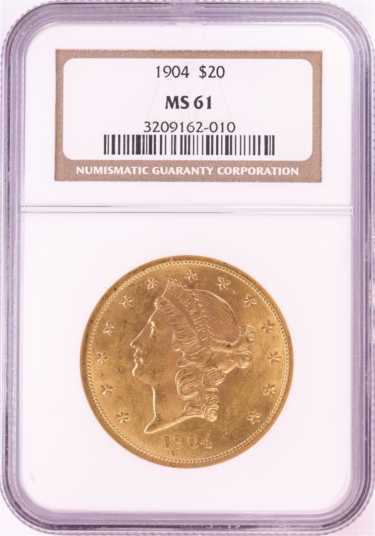 One 1904 $20 Liberty Head Double Eagle Gold Coin NGC MS61. NGC Certified.