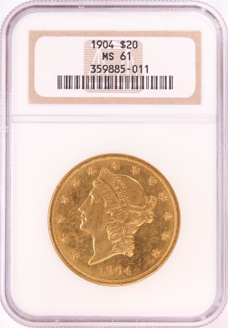 One 1904 $20 Liberty Head Double Eagle Gold Coin NGC MS61. NGC Certified.