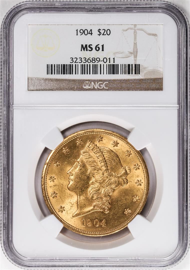 One 1904 $20 Liberty Head Double Eagle Gold Coin NGC MS61. NGC Certified.