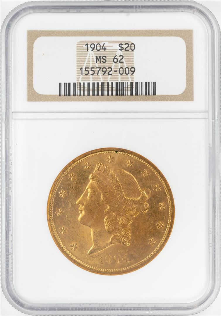 One 1904 $20 Liberty Head Double Eagle Gold Coin NGC MS62. NGC Certified.