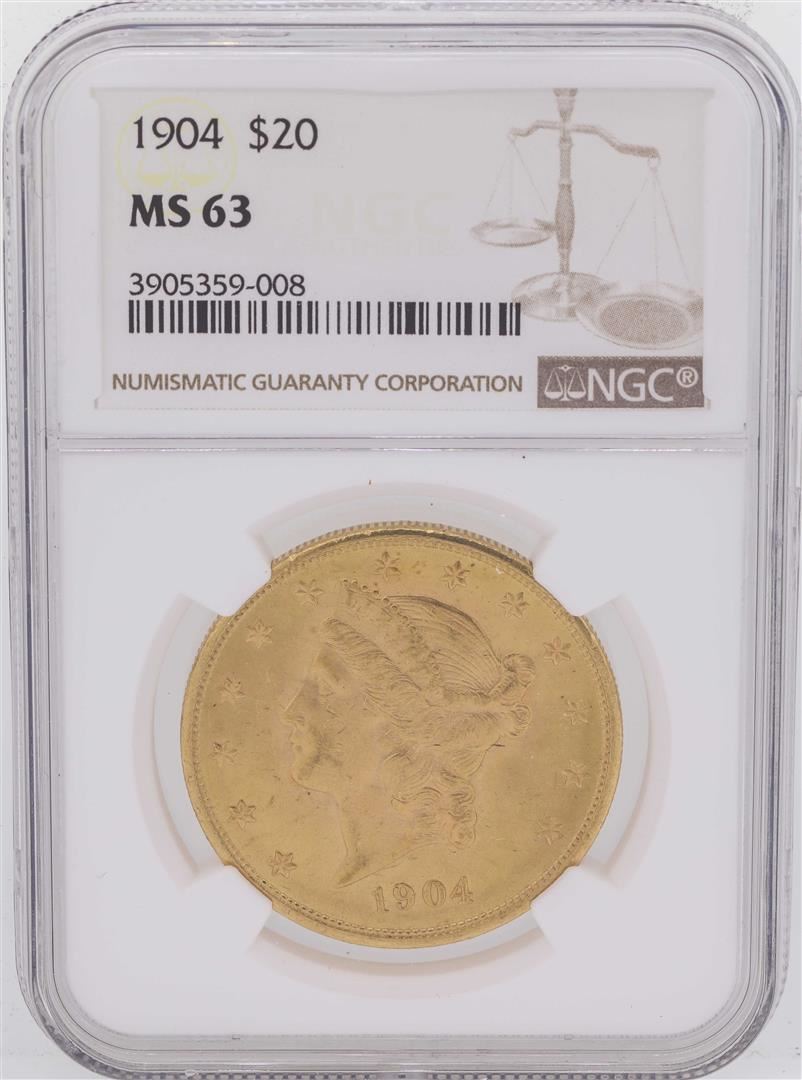 One 1904 $20 Liberty Head Double Eagle Gold Coin NGC MS63. NGC Certified.