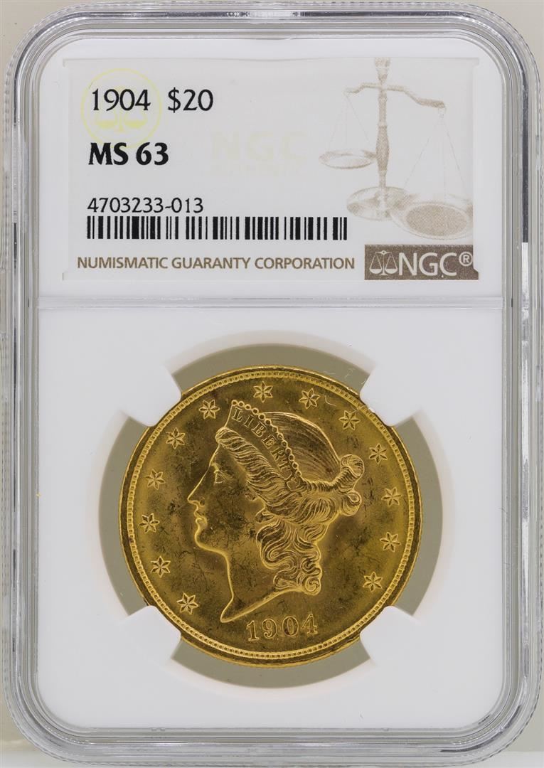 One 1904 $20 Liberty Head Double Eagle Gold Coin NGC MS63. NGC Certified.