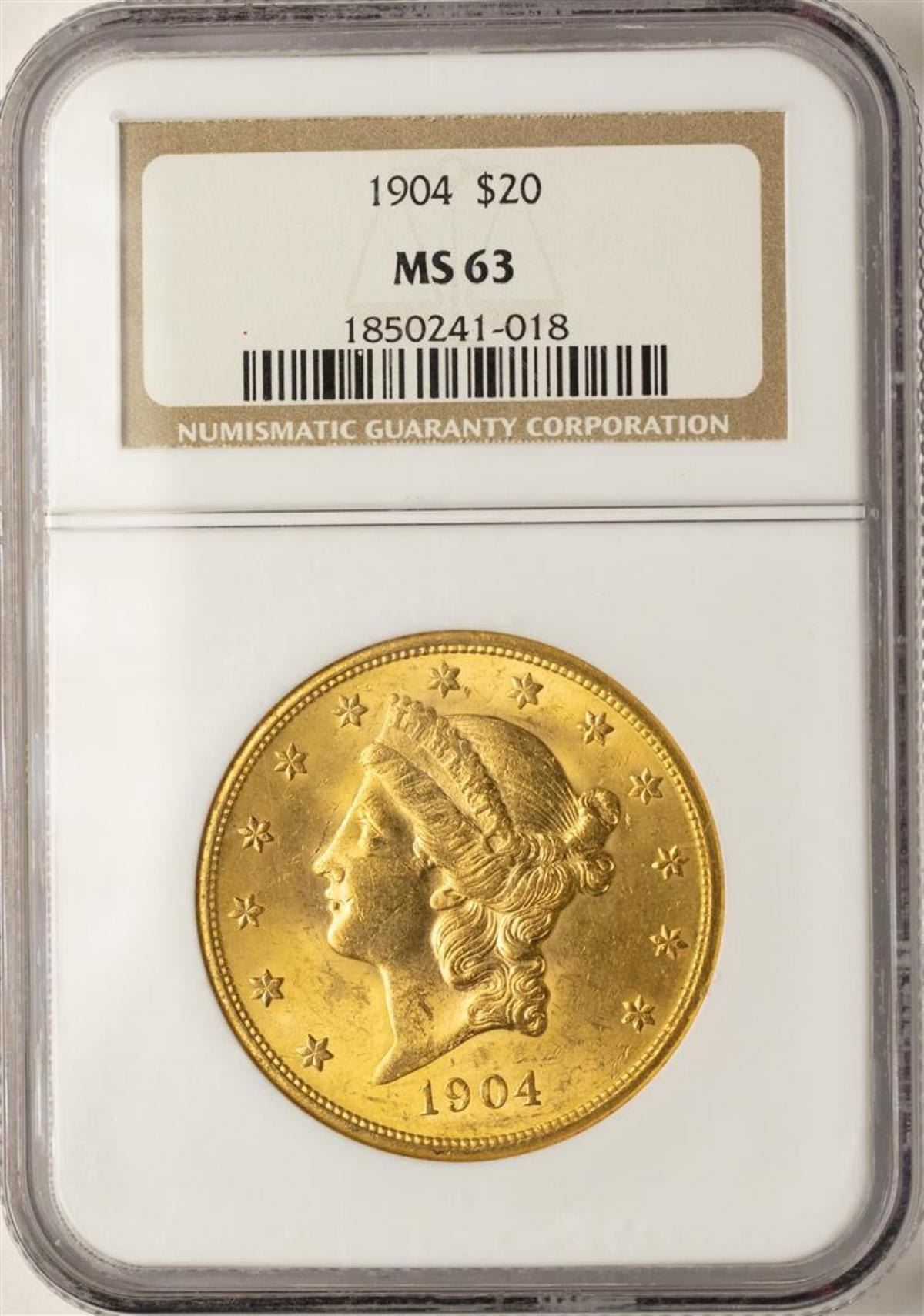One 1904 $20 Liberty Head Double Eagle Gold Coin NGC MS63. NGC Certified.