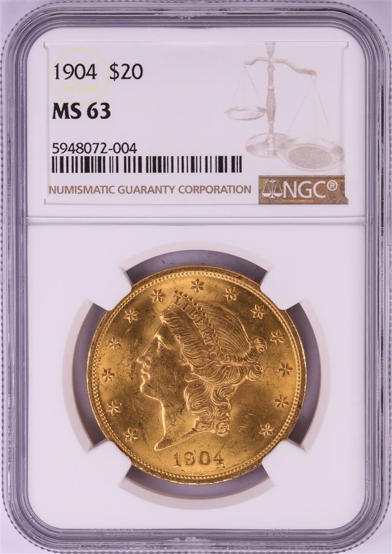 One 1904 $20 Liberty Head Double Eagle Gold Coin NGC MS63. NGC Certified.