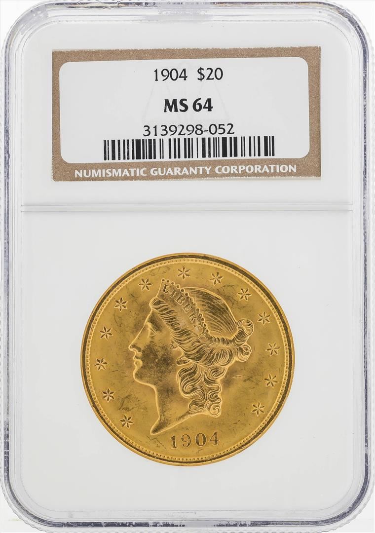 One 1904 $20 Liberty Head Double Eagle Gold Coin NGC MS64. NGC Certified.