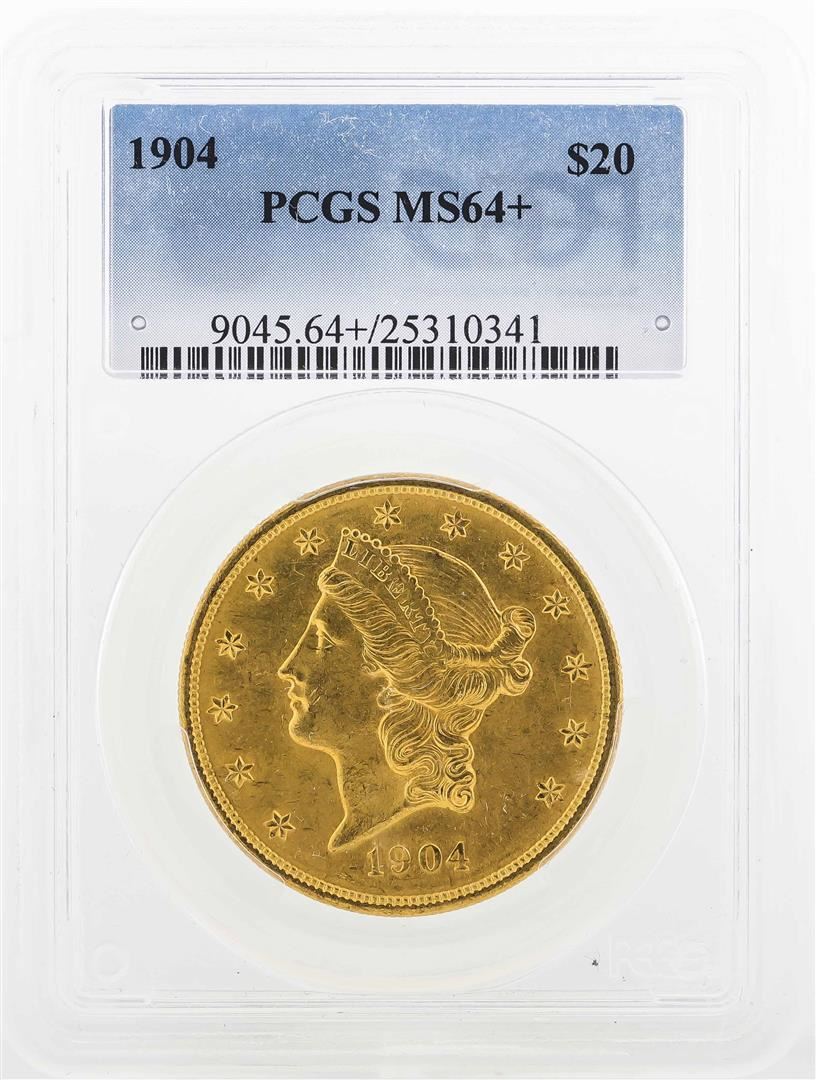 One 1904 $20 Liberty Head Double Eagle Gold Coin NGC MS64+. NGC Certified.