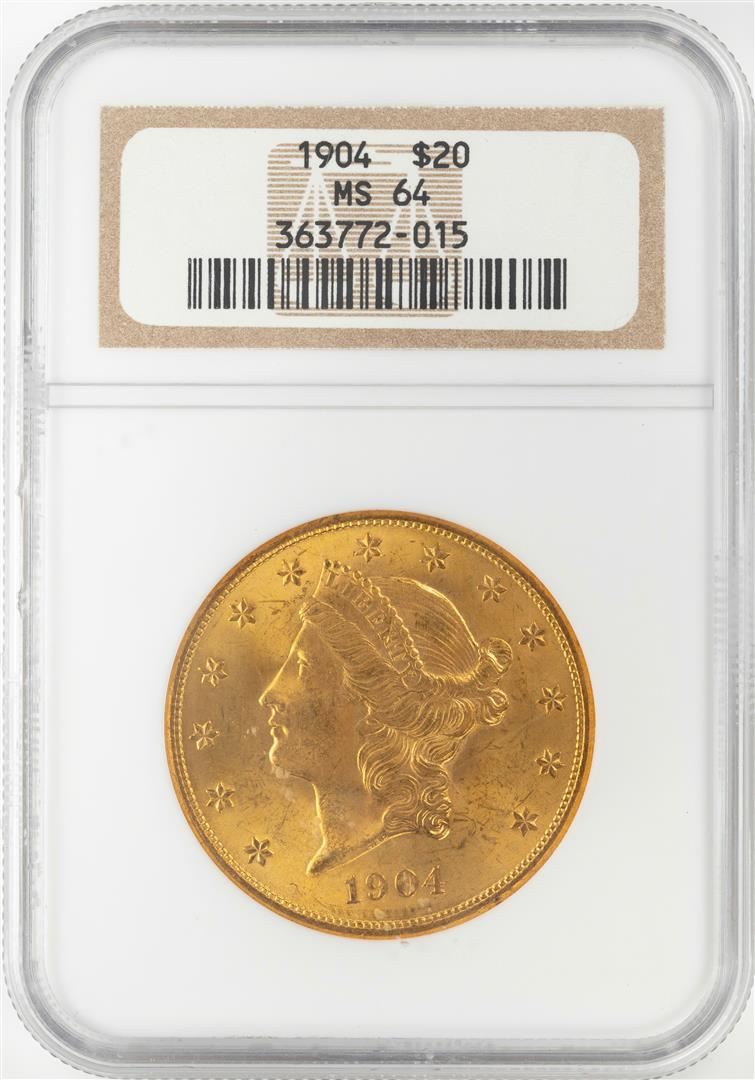 One 1904 $20 Liberty Head Double Eagle Gold Coin NGC MS64. NGC Certified.