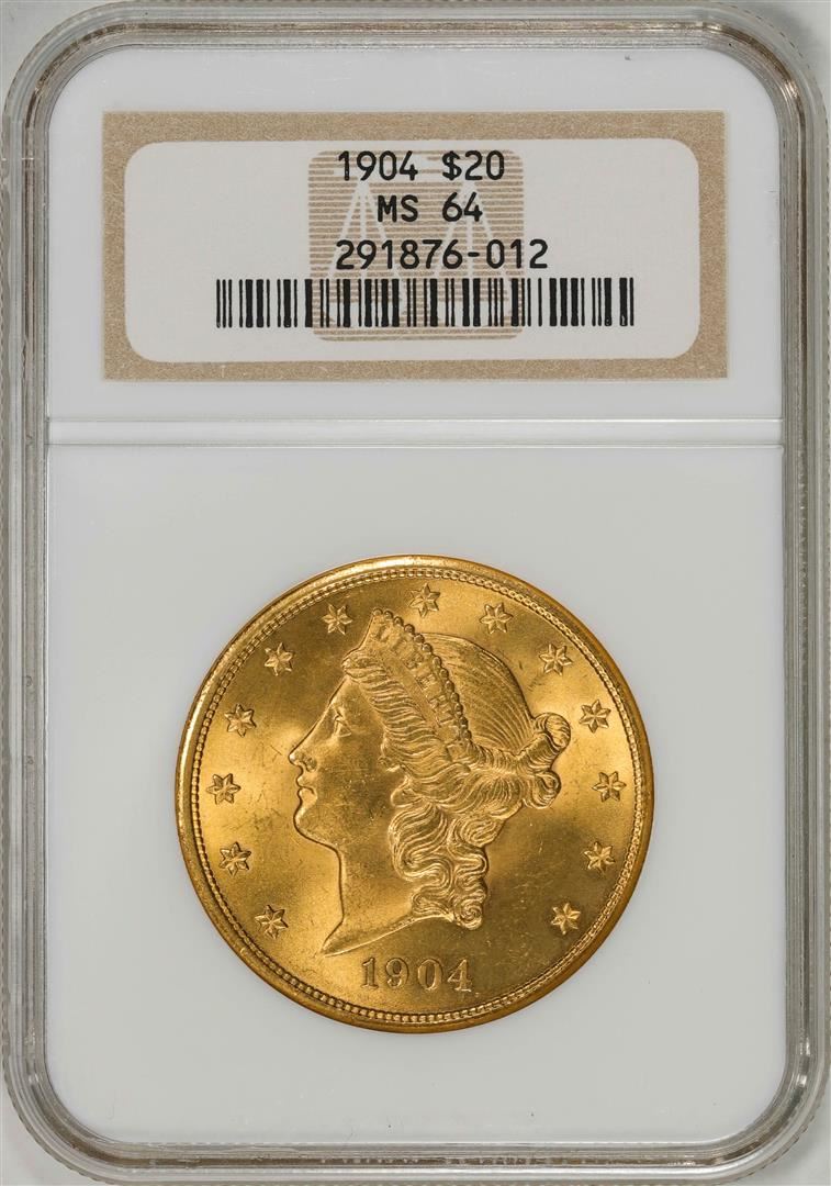 One 1904 $20 Liberty Head Double Eagle Gold Coin NGC MS64. NGC Certified.