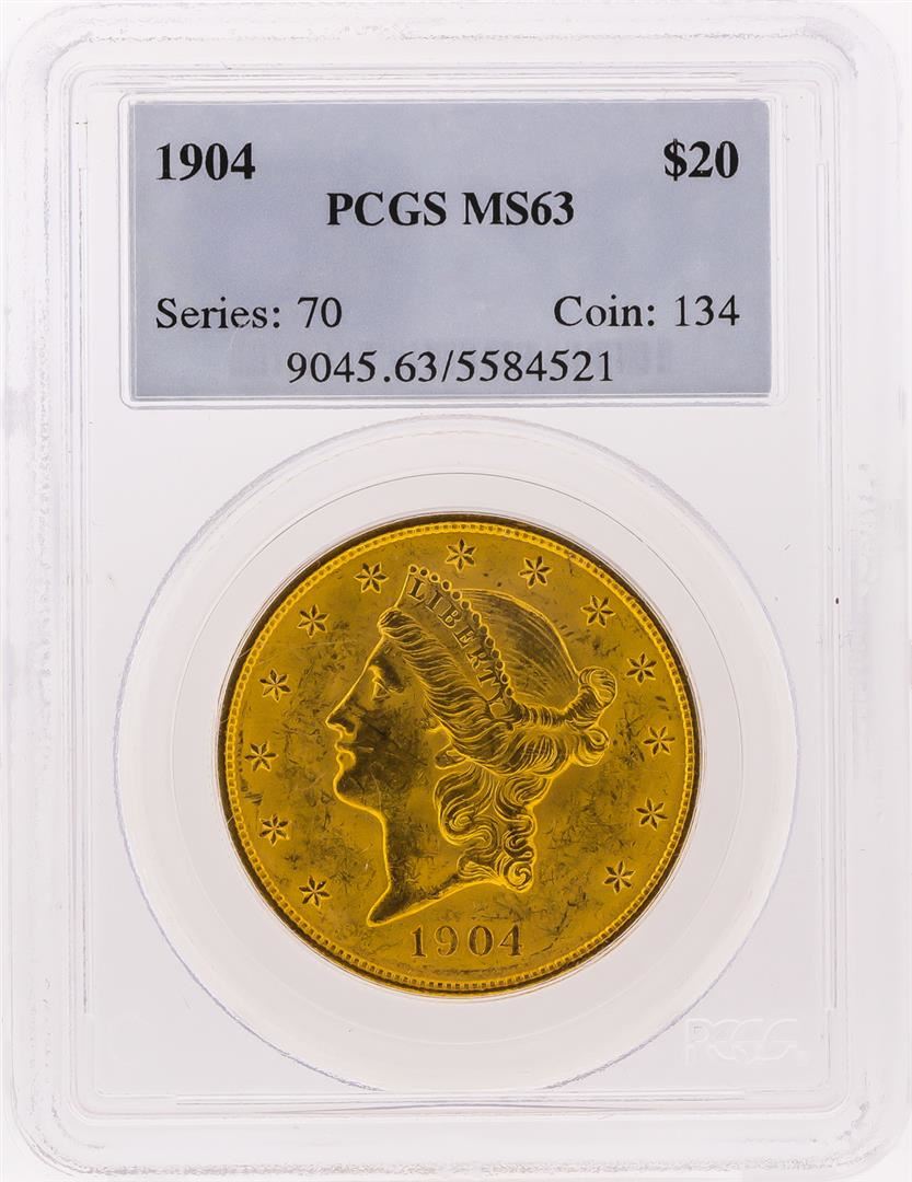 One 1904 $20 Liberty Head Double Eagle Gold Coin PCGS Graded MS63. PCGS Graded.