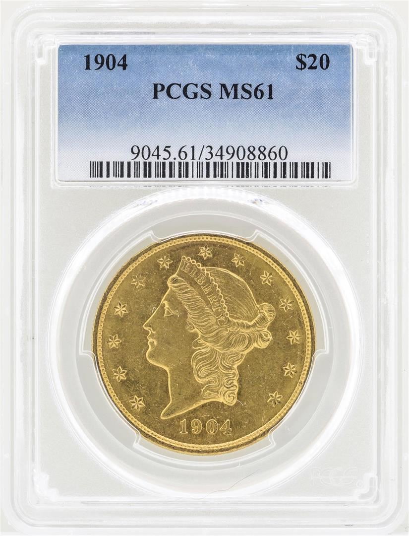 One 1904 $20 Liberty Head Double Eagle Gold Coin PCGS MS61. PCGS Graded.