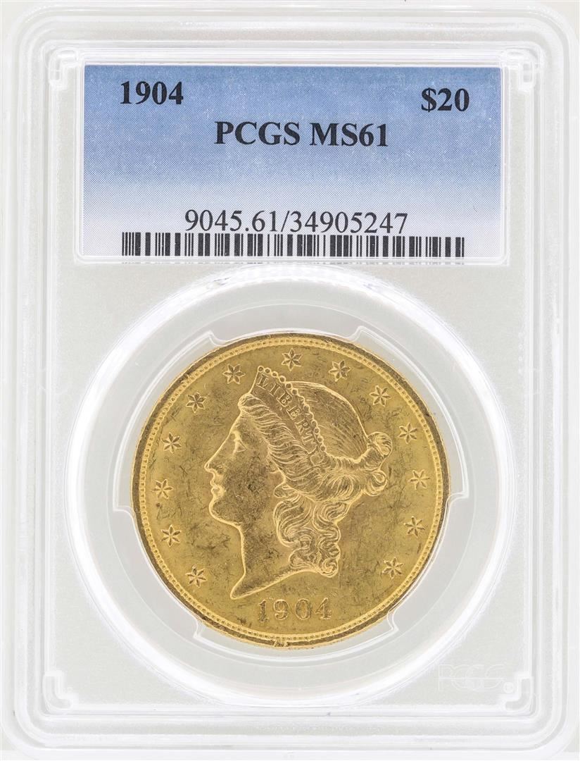 One 1904 $20 Liberty Head Double Eagle Gold Coin PCGS MS61. PCGS Graded.