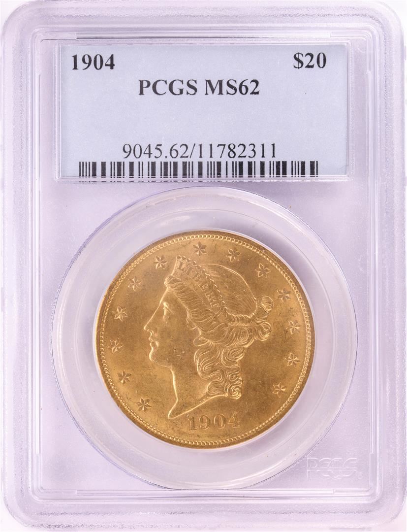 One 1904 $20 Liberty Head Double Eagle Gold Coin PCGS MS62. PCGS Graded.