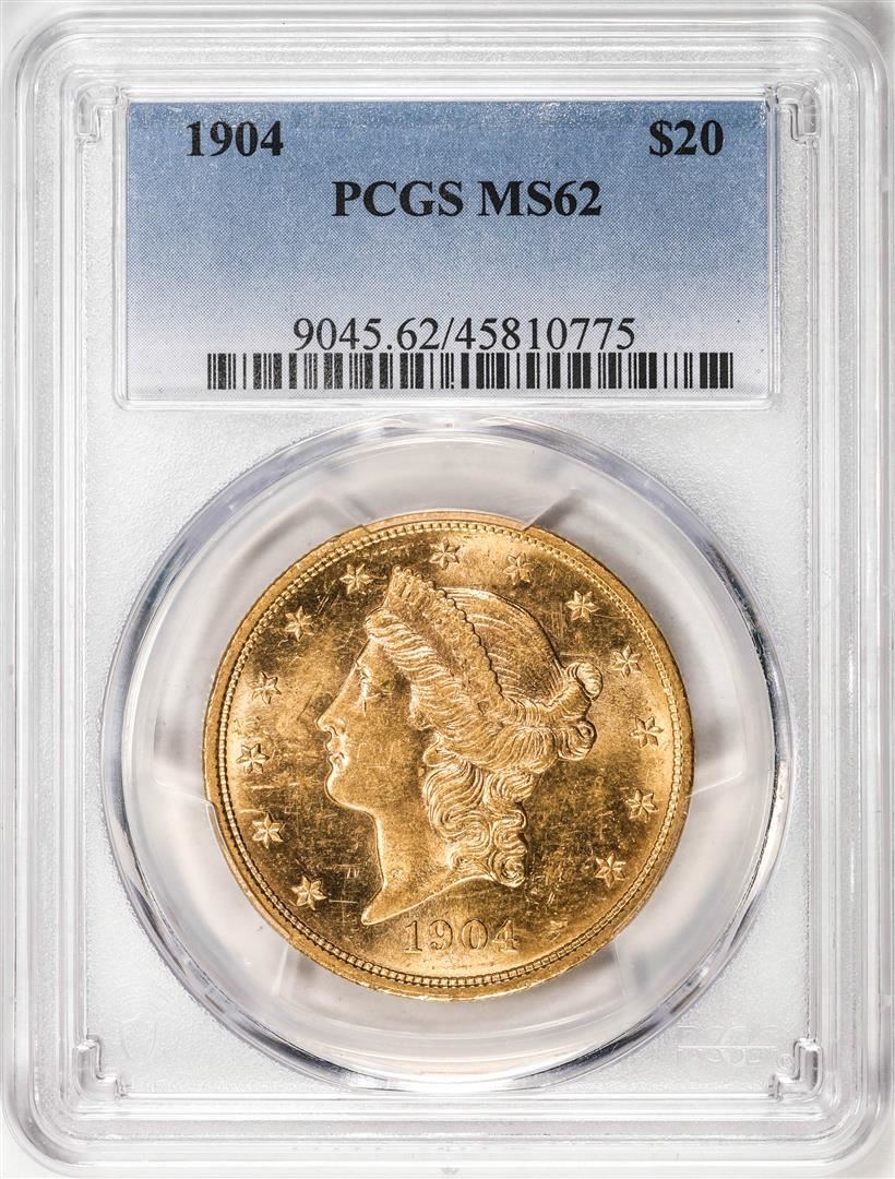 One 1904 $20 Liberty Head Double Eagle Gold Coin PCGS MS62. PCGS Graded.