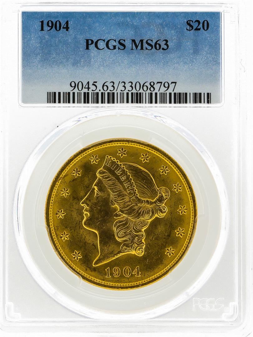 One 1904 $20 Liberty Head Double Eagle Gold Coin PCGS MS63. PCGS Graded.