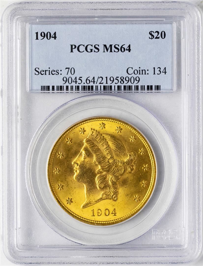 One 1904 $20 Liberty Head Double Eagle Gold Coin PCGS MS64. PCGS Graded.