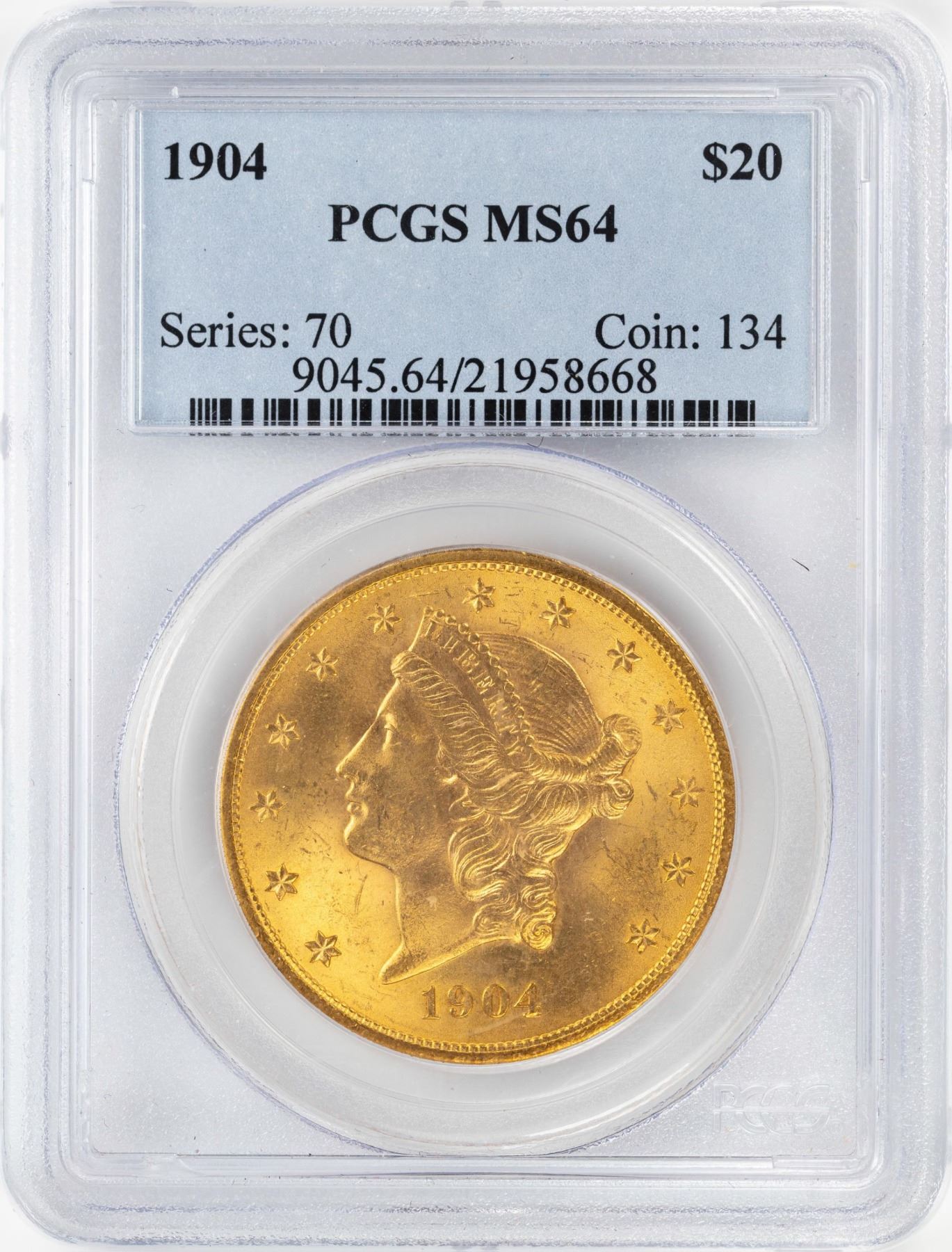 One 1904 $20 Liberty Head Double Eagle Gold Coin PCGS MS64.