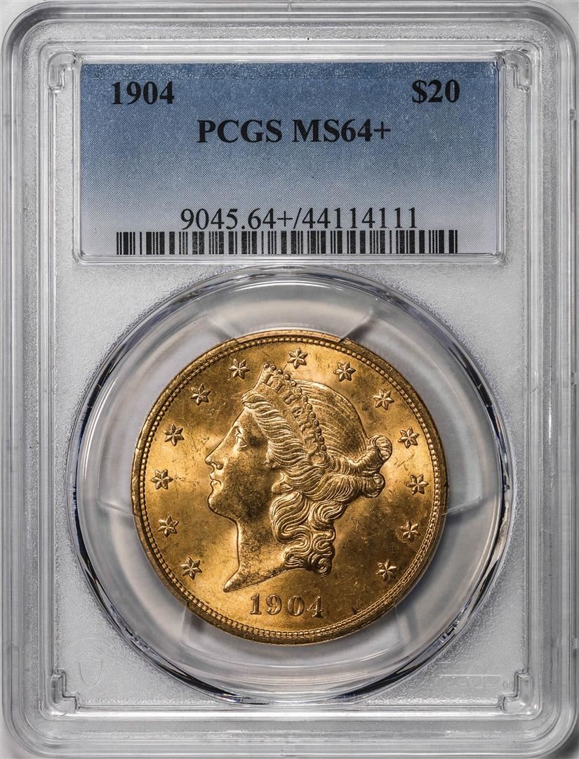 One 1904 $20 Liberty Head Double Eagle Gold Coin PCGS MS64+.