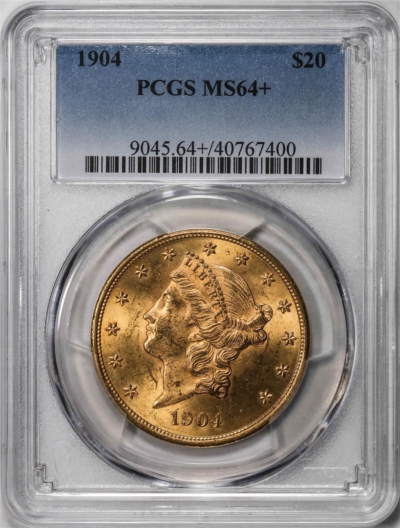 One 1904 $20 Liberty Head Double Eagle Gold Coin PCGS MS64+.