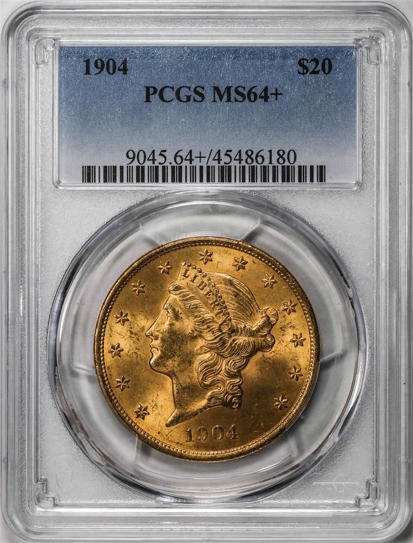 One 1904 $20 Liberty Head Double Eagle Gold Coin PCGS MS64+.