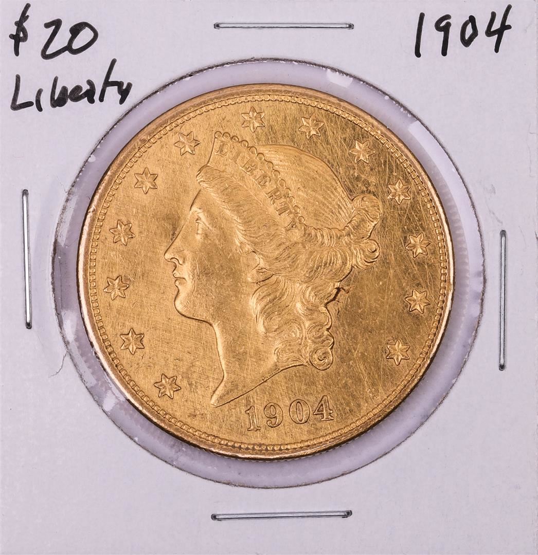 One 1904 $20 Liberty Head Double Eagle Gold Coin.
