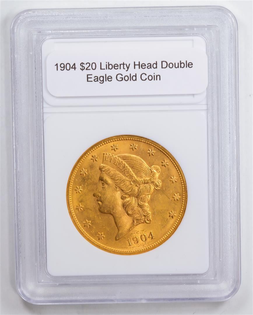 One 1904 $20 Liberty Head Double Eagle Gold Coin.