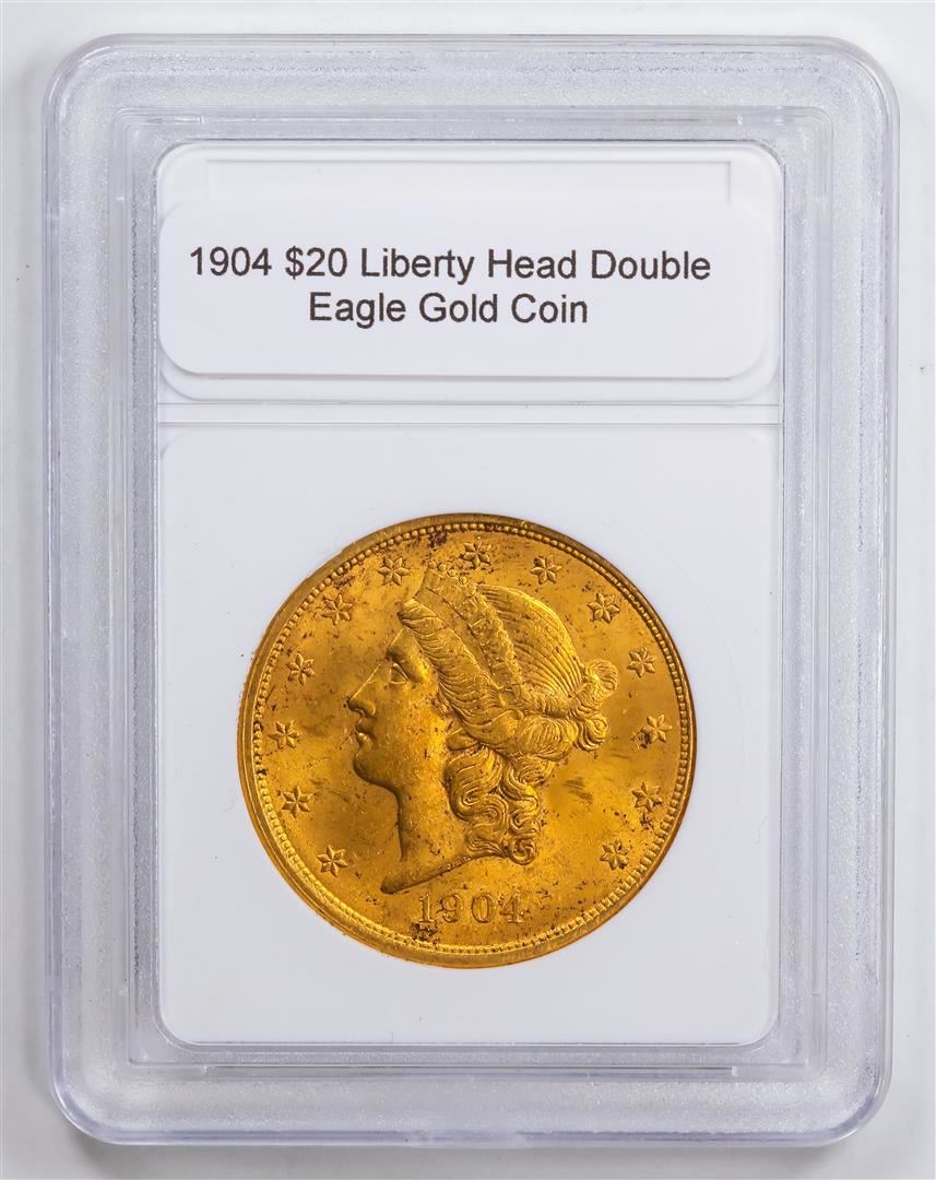 One 1904 $20 Liberty Head Double Eagle Gold Coin.