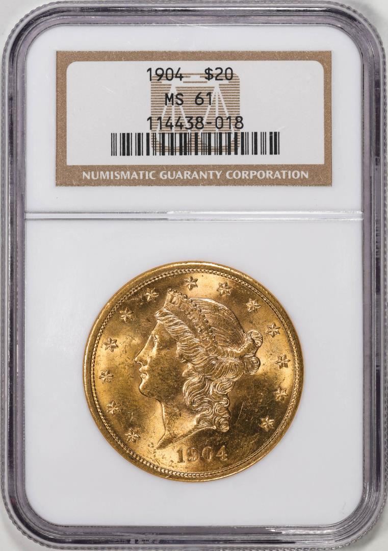 One 1904 $20 Liberty Head Eagle Gold Coin NGC MS61. NGC Certified.
