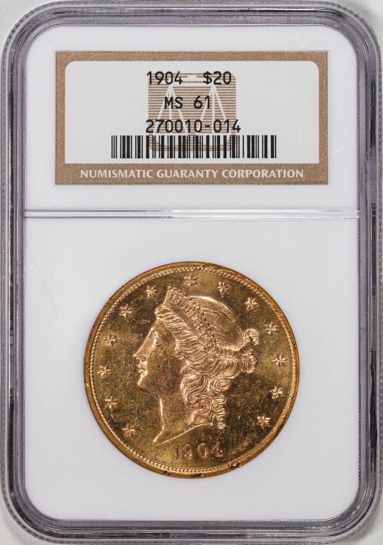 One 1904 $20 Liberty Head Eagle Gold Coin NGC MS61. NGC Certified.
