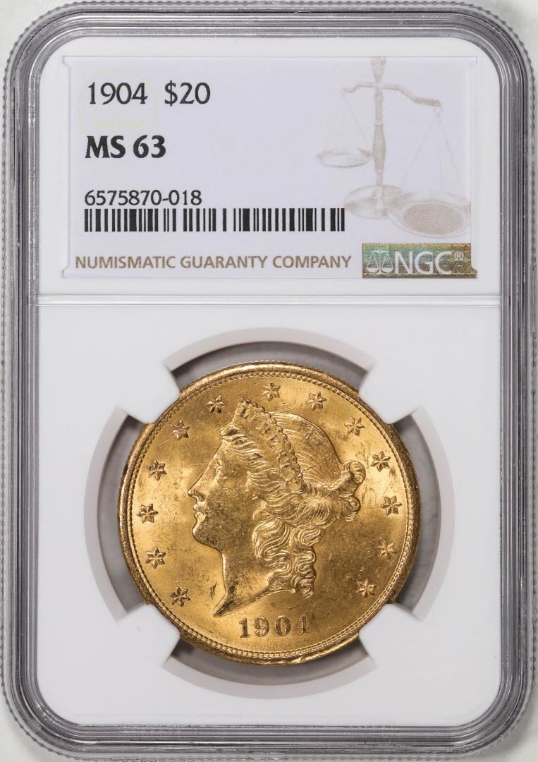 One 1904 $20 Liberty Head Eagle Gold Coin NGC MS63. NGC Certified.