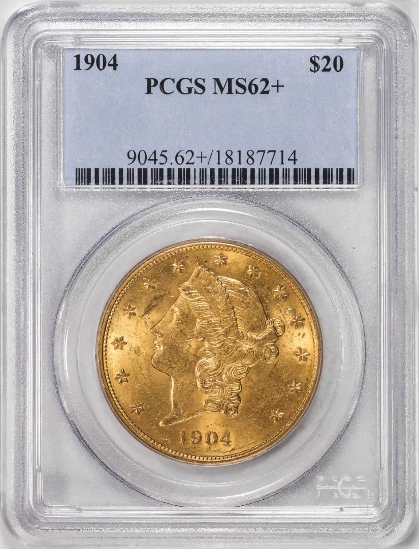 One 1904 $20 Liberty Head Eagle Gold Coin PCGS MS62+. PCGS Graded.