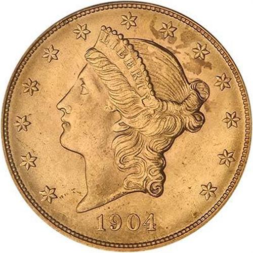 A nice pinkish-orange tint radiates from this lustrous Liberty twenty.