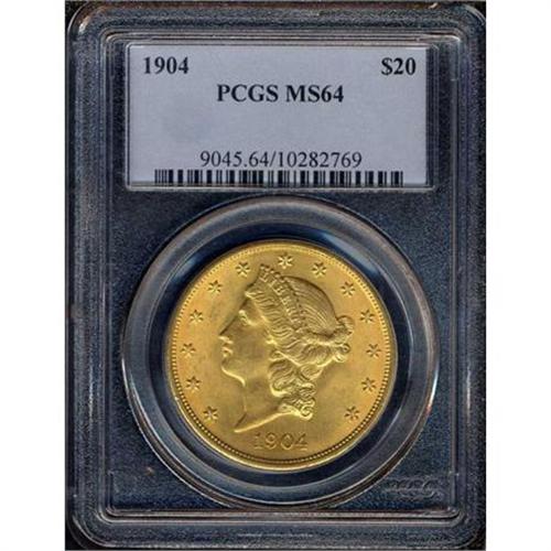 <b>1904 $20 Liberty. PCGS graded MS64.</b> Beams of frosted mint luster and rich tawny orange-gold hues. Desirable with this precision strike on the main devices <b>(PCGS # 9045)</b> <i>