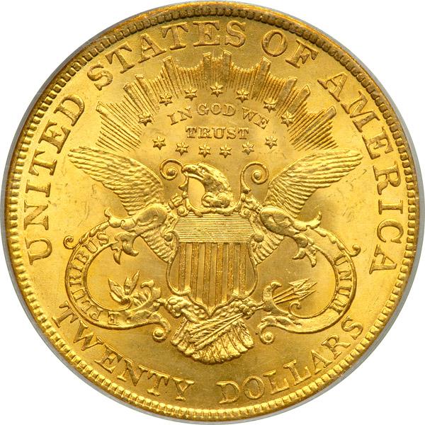 1904 $20 Liberty. PCGS graded MS-64 PQ. Lovely golden surfaces and a Premium Quality coin for the grade. In an old green label holder. This conditionally scarce contribution to the sale is vibrant with rich frosty gold surfaces. Impressive too is the detail, which we find is free of censure, being sharp in all areas including the stars. Judged from an aesthetic standpoint, the 1904 is also possessed of a much finer strike than is typically found for some earlier dates in the series (PCGS # 9045) .