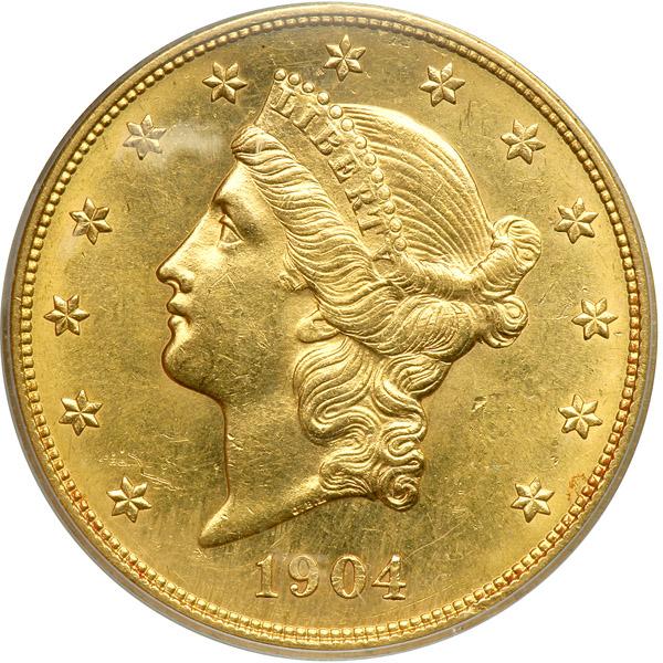 1904 $20 Liberty. PCGS Genuine, cleaned. Our grade is MS-62 light hairlines (PCGS # 9045) .