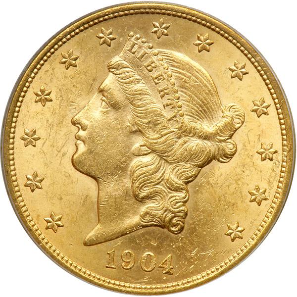 1904. PCGS graded MS-62. Lightly toned (PCGS # 9045) .