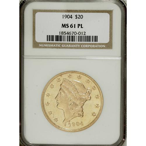 1904 $20 MS61 Prooflike NGC. NGC Census: (48/320).